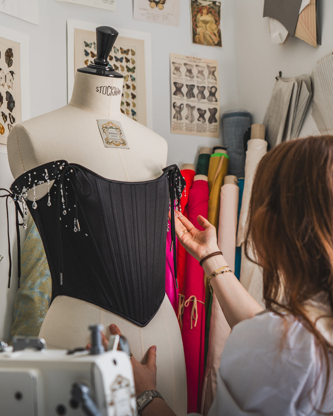 Every single item is handmade to order, each piece shares a story behind that goes from designing it, drafting the pattern and the realization of the final piece using only the finest silk.