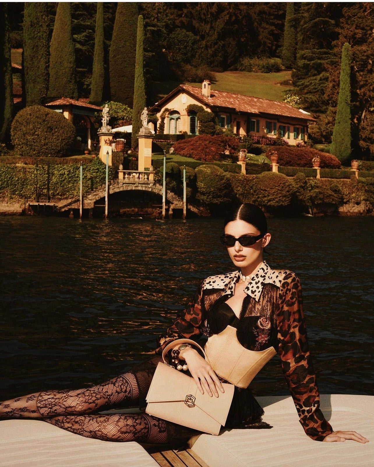 René Caovilla Christmas advertisement featuring the Actias corset customized with white lace. (The corset fit was chose high neck for the styling, it’s fully adjustable with the strings.) Photographed by Nima Benati and styled by Giorgio Andrea Branduardi assisted by Rebecca Lai.