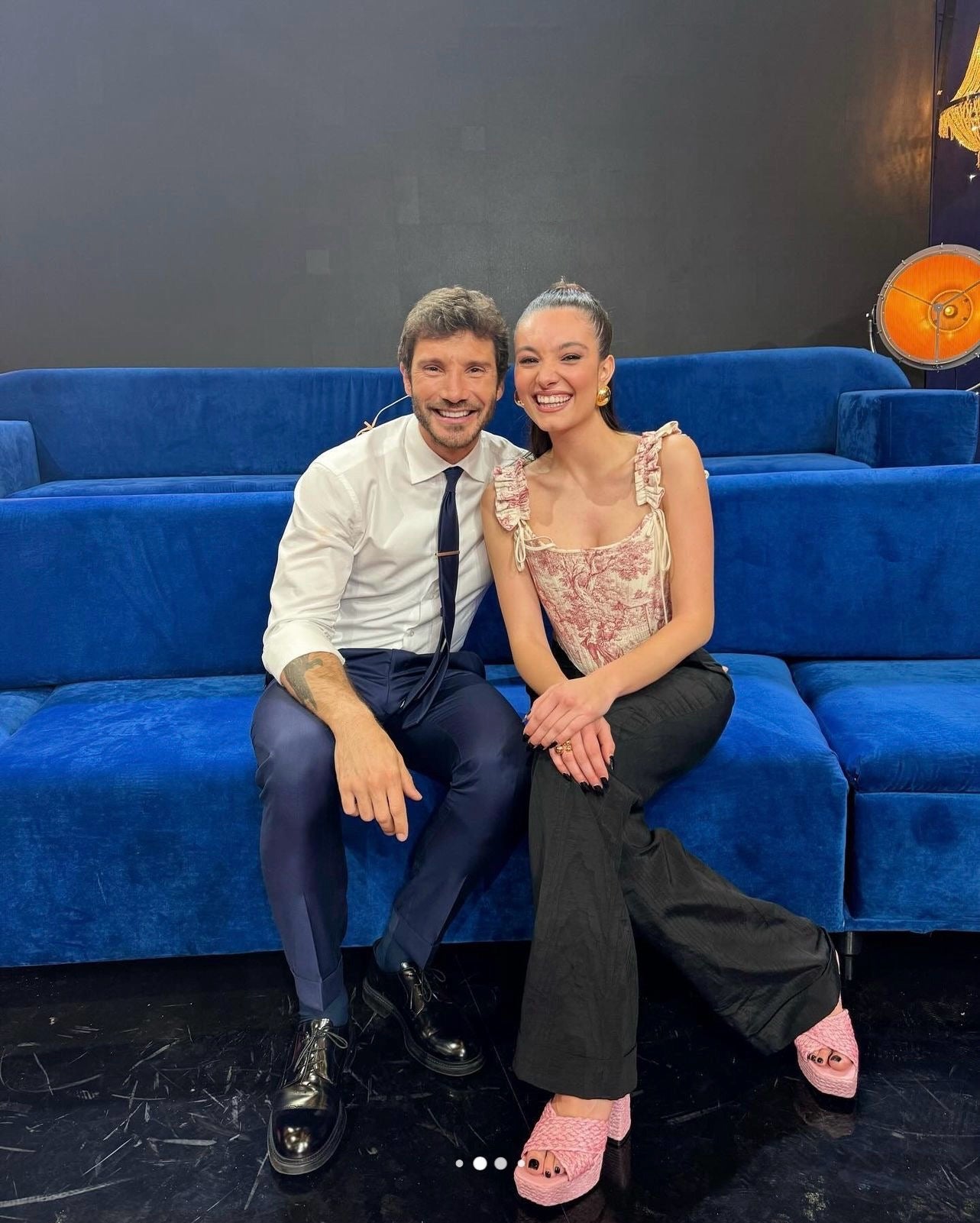 On the last episode for Salotto Salemi, Giulia wore a fuchsia custom corset. Styled by Giorgio Andrea Branduardi assisted by Rebecca Lai.